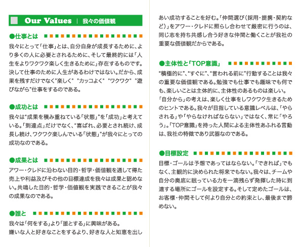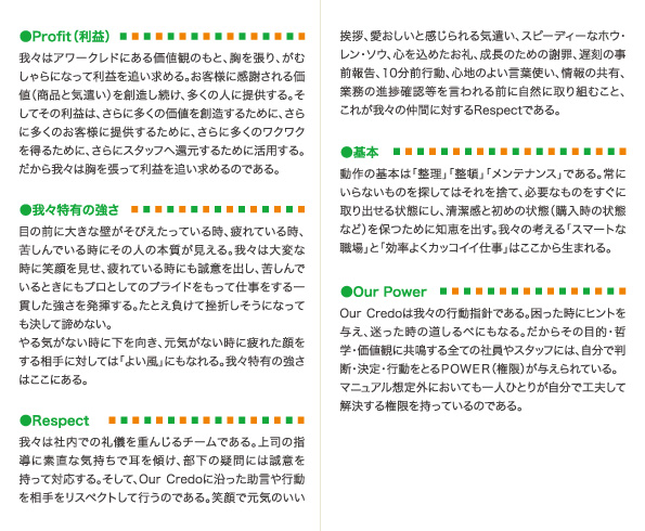 我々の想い 我々の哲学、Our Credo(我々の志)のご紹介です。